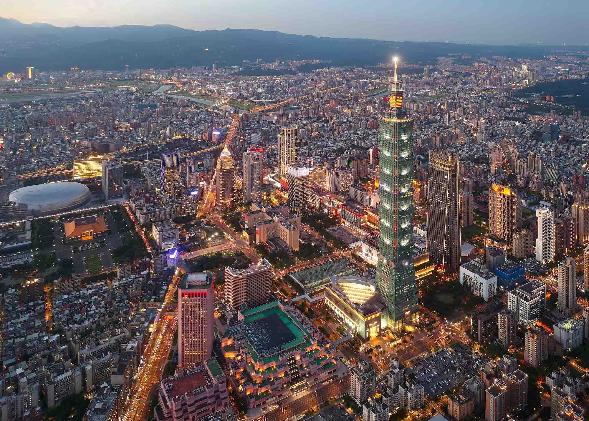 Taipei’s skyline changes at night.