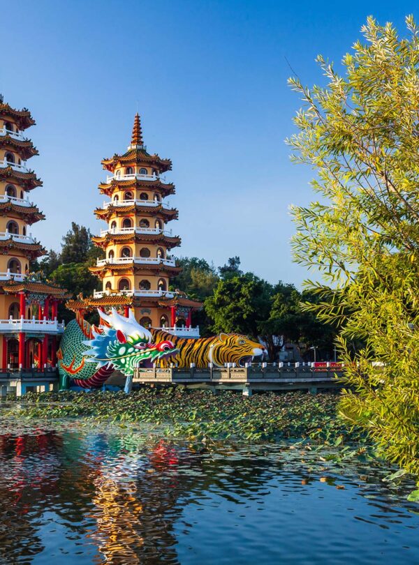 - Lotus Pond & Dragon-Tiger Pagodas – Start at Kaohsiung’s iconic Lotus Pond, a shimmering lake decorated with temples, bridges, and pagodas that look like they were designed by someone who wanted to win Instagram forever. Walk through the dragon’s mouth, exit through the tiger’s—instant good luck upgrade.
