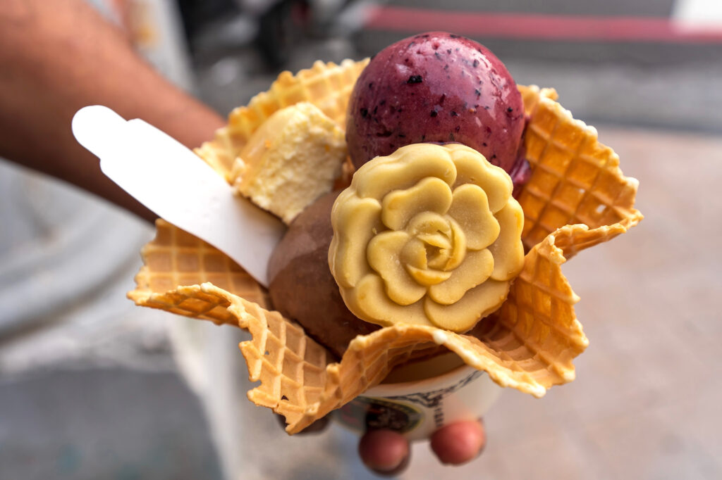 Your journey begins in Taipei, a city where the modern and the traditional live side by side. From your hotel, you’ll set off for the windswept North Coast, where the crashing surf of Yin Yang Sea paints a striking palette of gold and indigo against the rocks. Not far away lies Jiufen, once a gold-mining town, now a maze of narrow alleyways lined with lantern-lit teahouses. The aroma of taro balls and sweet peanut ice cream drifts through the air, inviting you to linger.